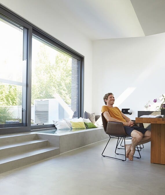 aroTHERM es la mejor opción para sistemas wellCONFORT que garantizan un máximo ahorro y una salud óptima en la vivienda, apto para viviendas unifamiliares nuevas o existentes con caldera instalada, viviendas en altura con tendedero espacioso o espacios comunes para sistemas, pequeños edificios terciarios y negocios.